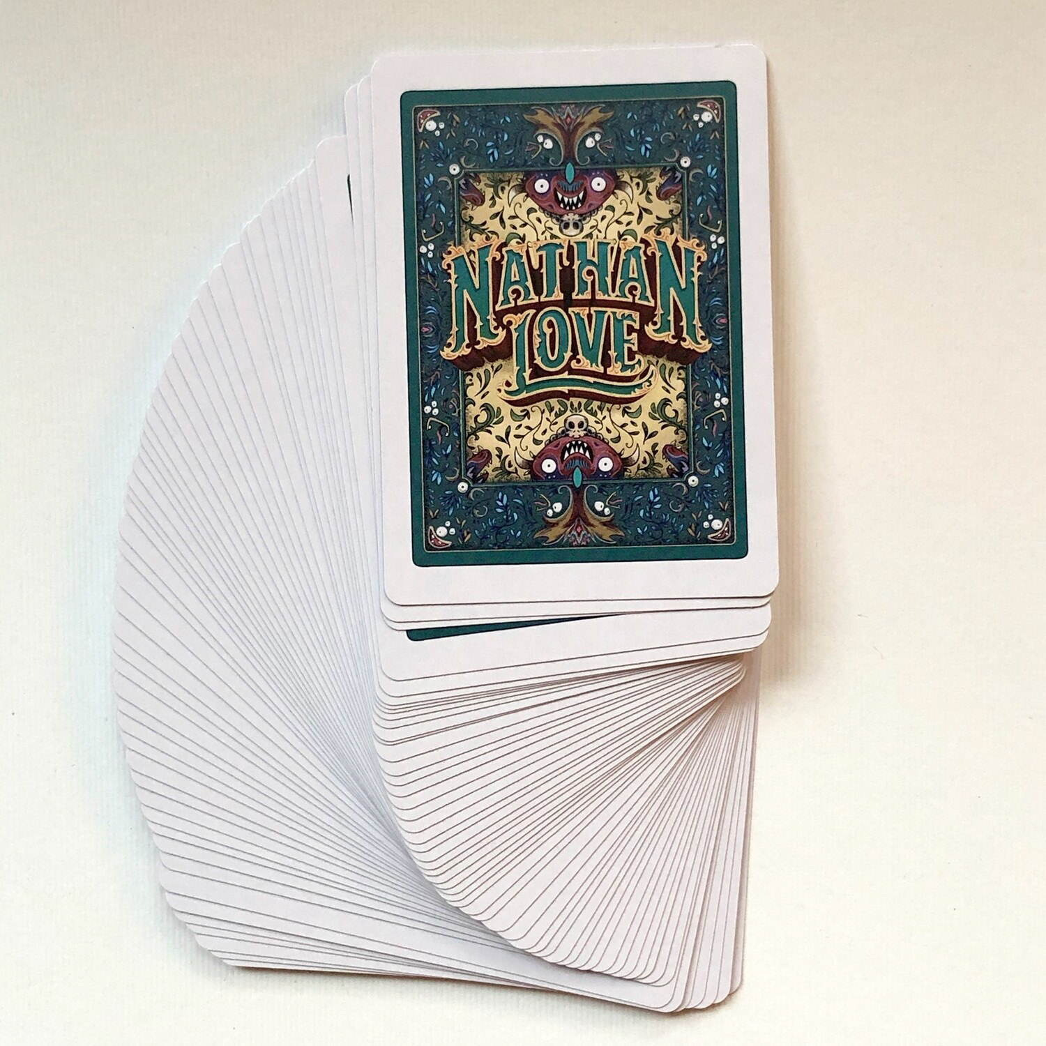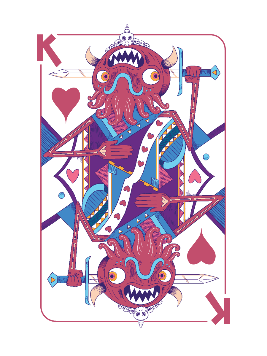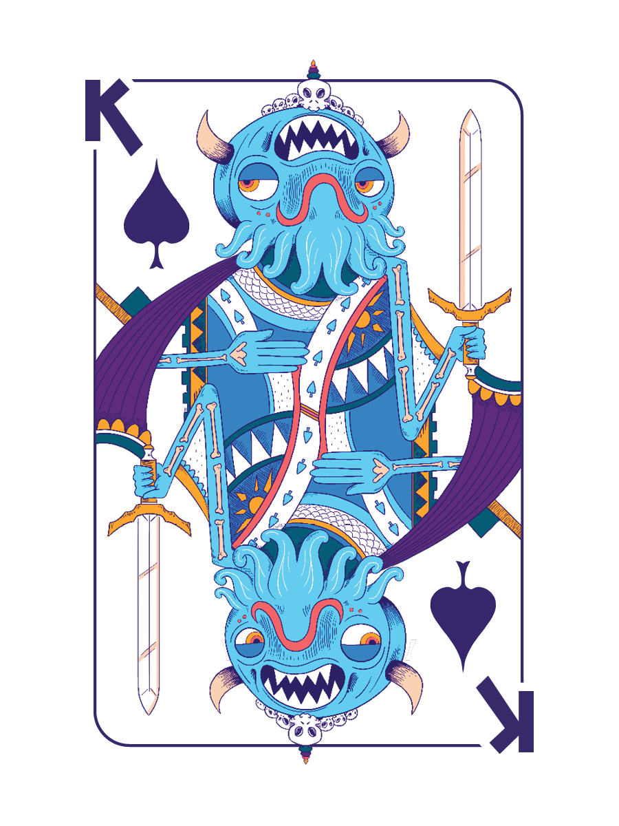 I've always wanted to make a custom deck of cards, so I did! I created these at Nathan Love for the grand opening of our new store. The feature the Klops, mysterious galactic fellows, as well as the Worshippers, strange face creatures. They are available for purchase here.