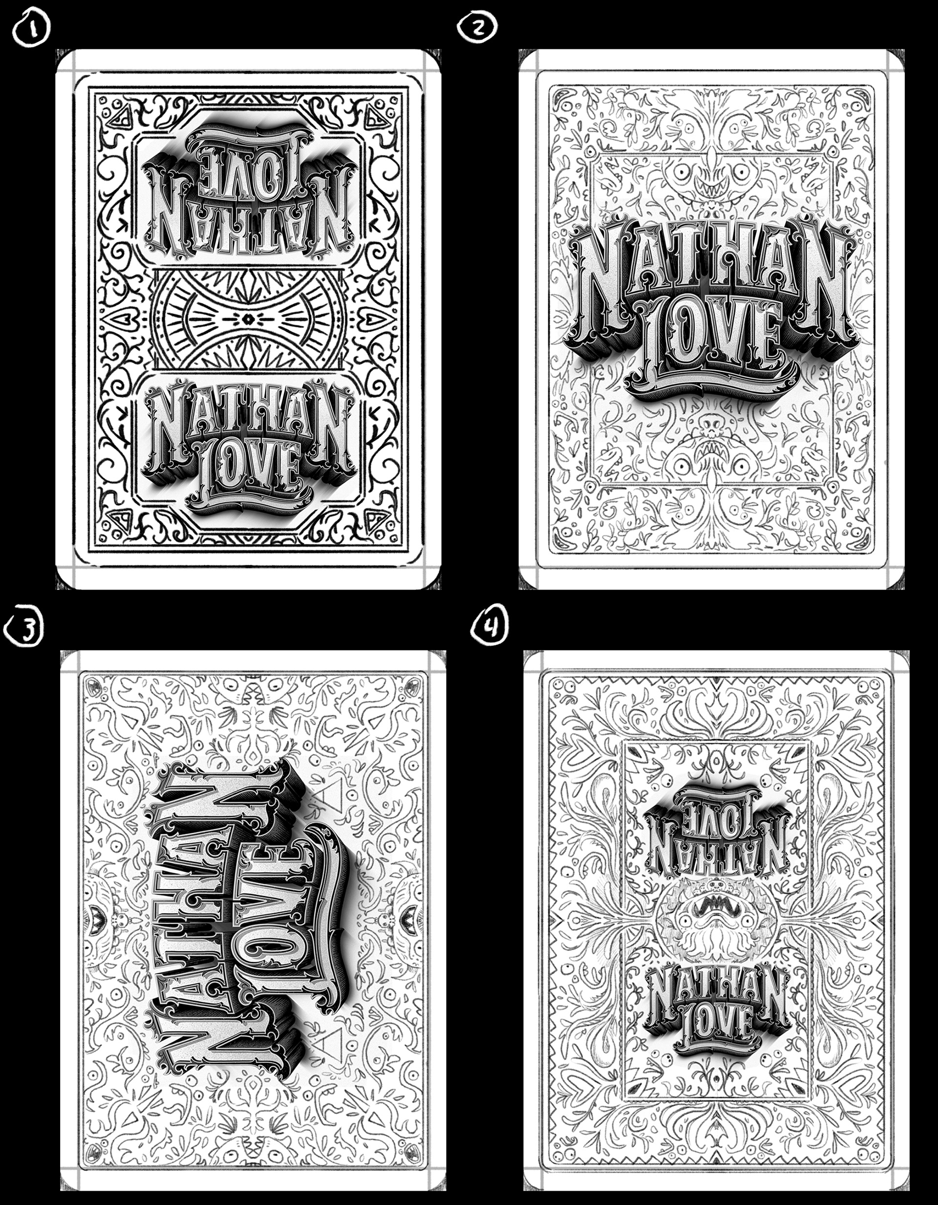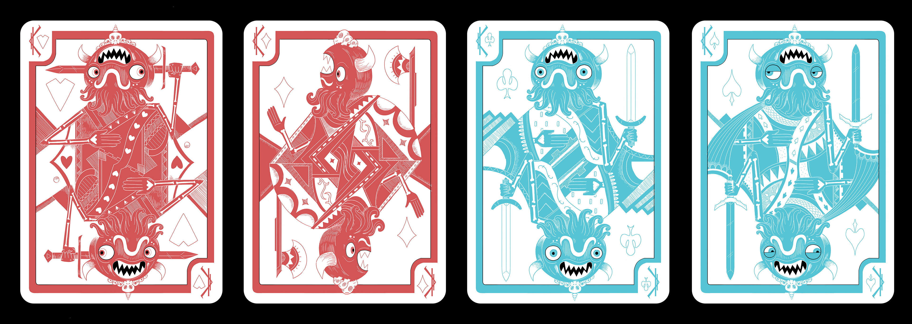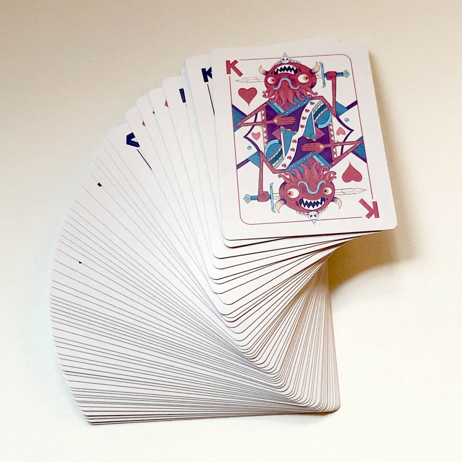 I've always wanted to make a custom deck of cards, so I did! I created these at Nathan Love for the grand opening of our new store. The feature the Klops, mysterious galactic fellows, as well as the Worshippers, strange face creatures. They are available for purchase here.