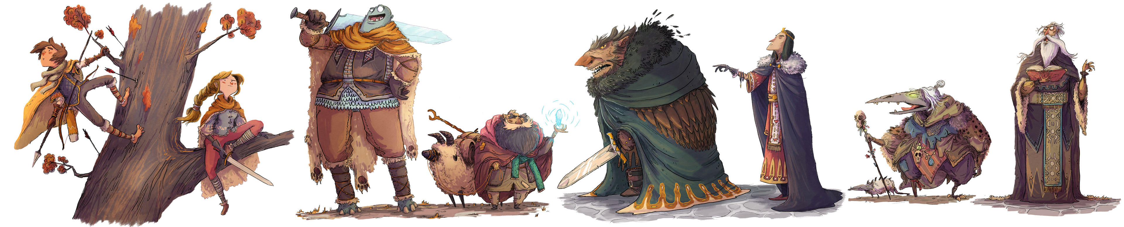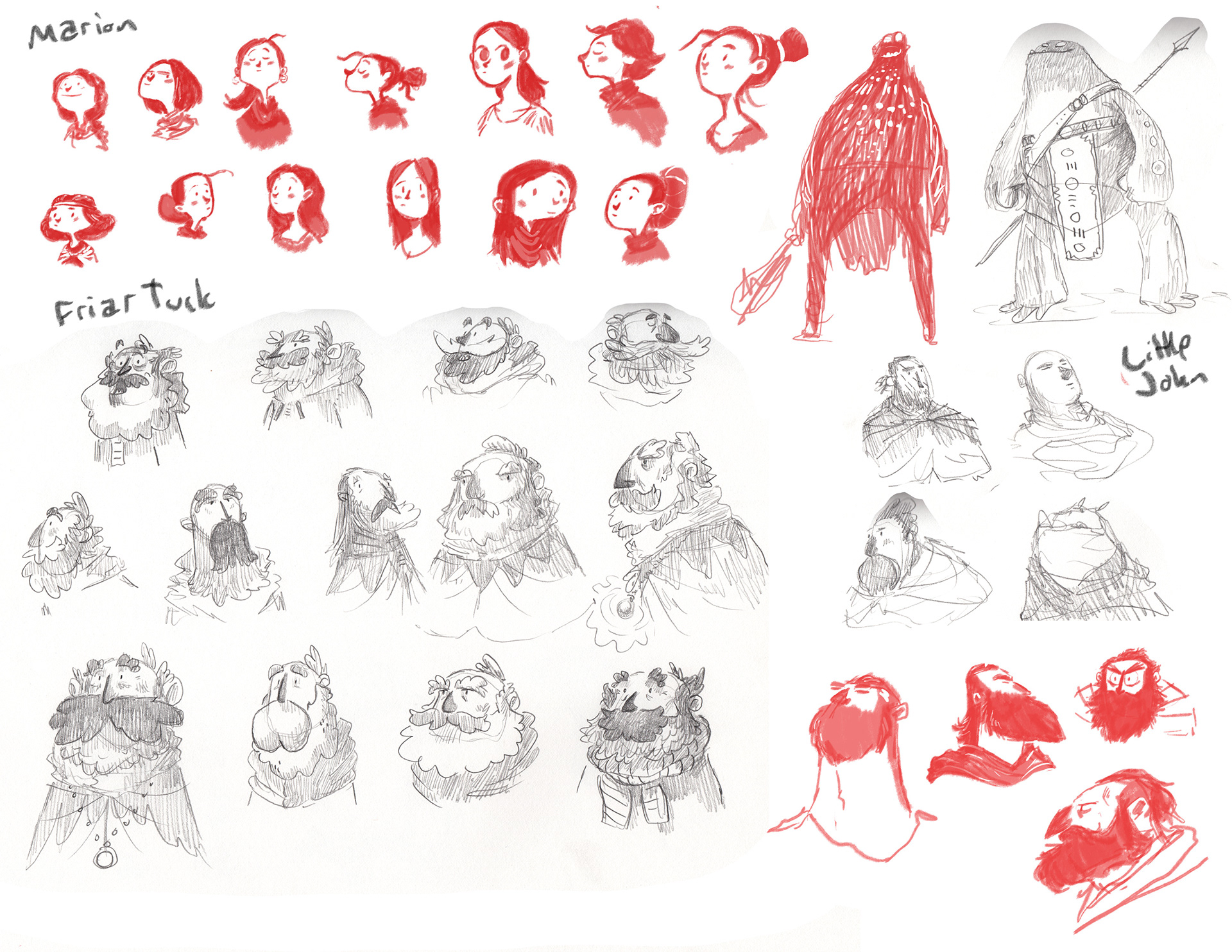 These were done for Masters of Anatomy's Character Design book. The goal was to create an original interpretation of the cast of Robin Hood. The characters were Robin, Marion, Little John, Friar Tuck, the Sheriff of Nottingham, Prince John, Maudlin the Witch and an evil Advisor. I went in a more fantasy, monster-y, autumn-y direction. Enjoy!